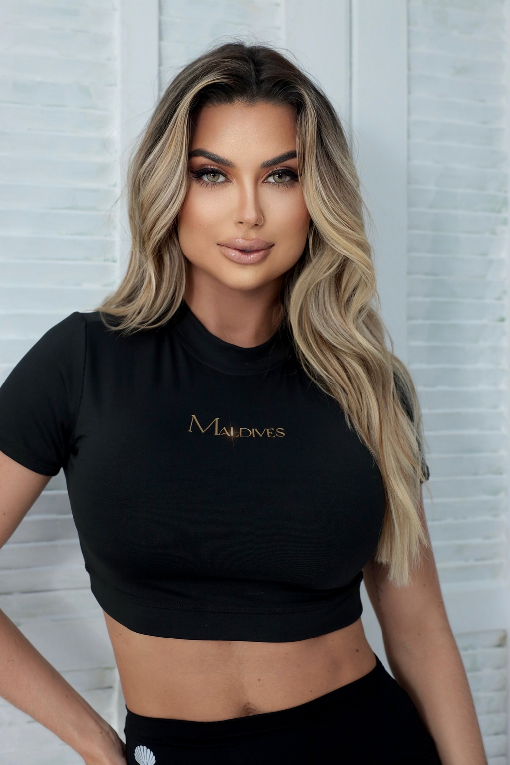 Apresentamos o Croped Baby Look Preto, a escolha perfeita para quem busca elegância e exclusividade em um visual moderno e leve.