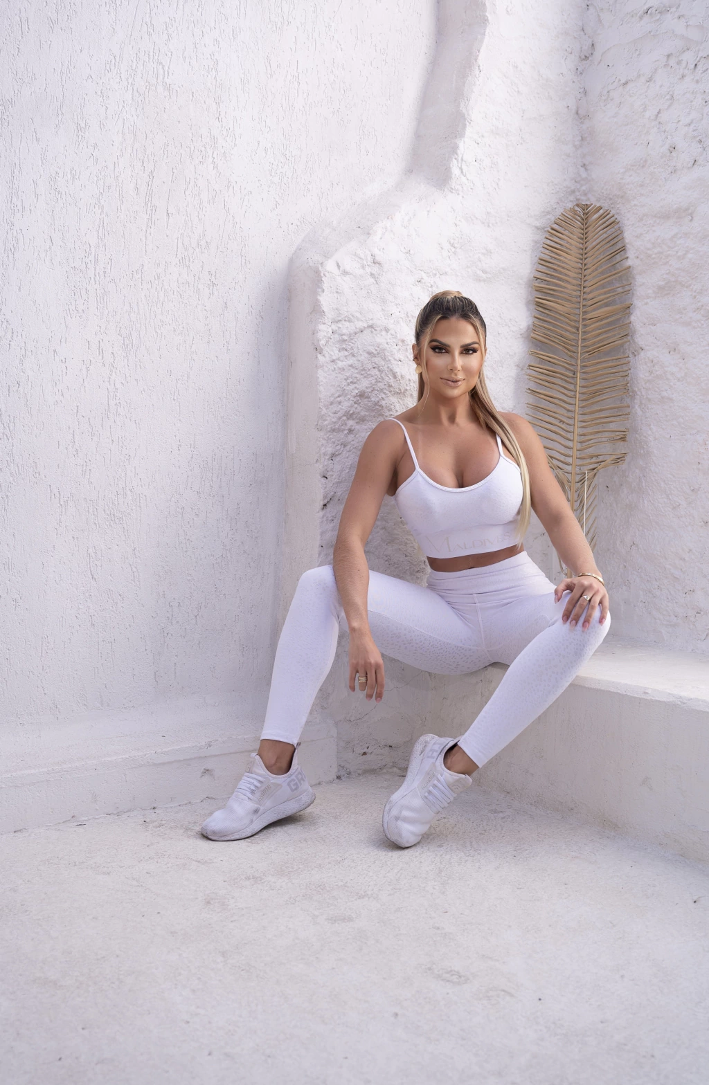 Este top destaca-se pelo seu tecido branco com detalhes em oncinhas cintilantes, que conferem uma elegância discreta e sutil ao visual. As alças elásticas super confortáveis garantem liberdade de movimento, enquanto o cós largo com elástico de compressão confortável na parte de baixo abraça o busto, valorizando a silhueta com delicadeza e segurança.